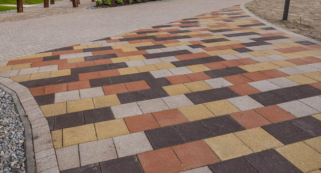 - Размеры тротуарной плитки в узоре мощения Средняя