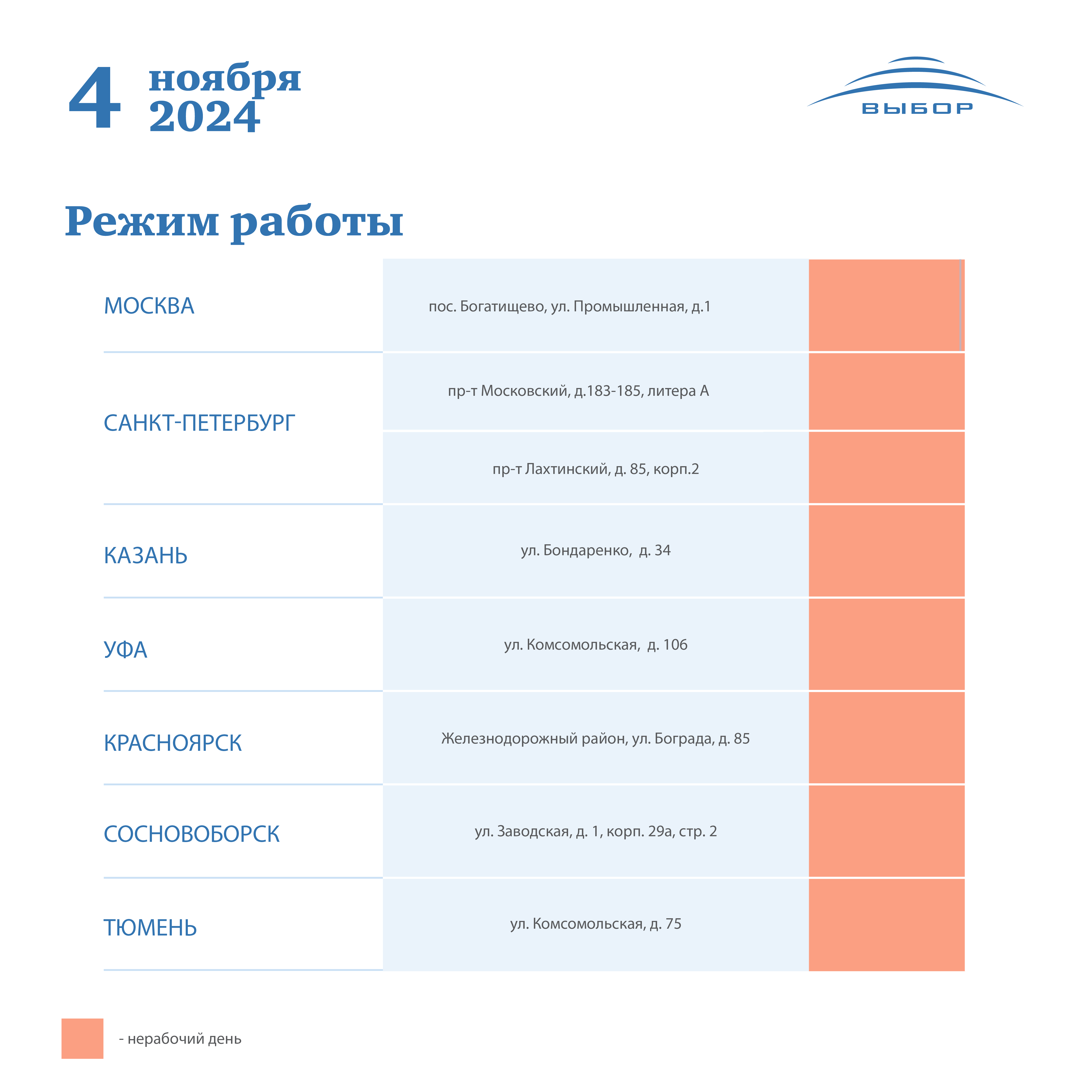 График работы 4 ноября 2024