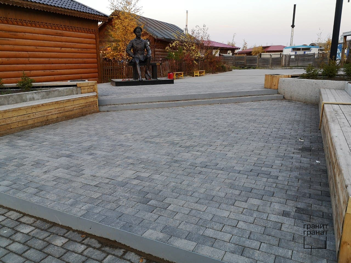 Тротуарная плитка ПРЯМОУГОЛЬНИК - Листопад гранит Антрацит